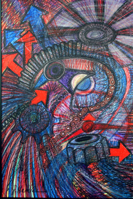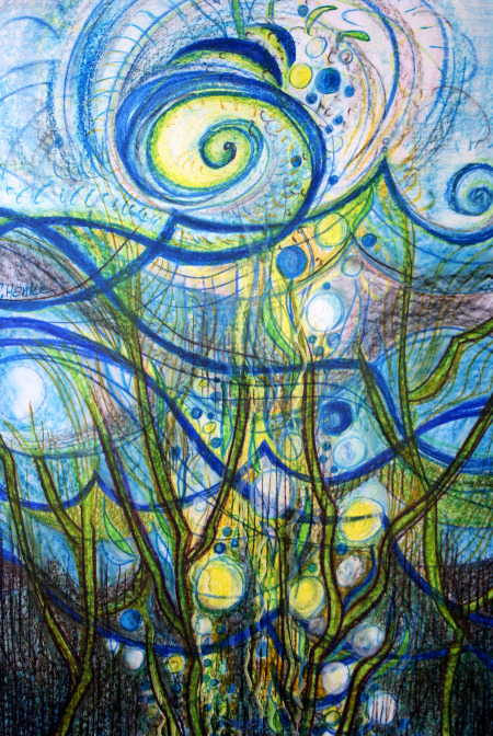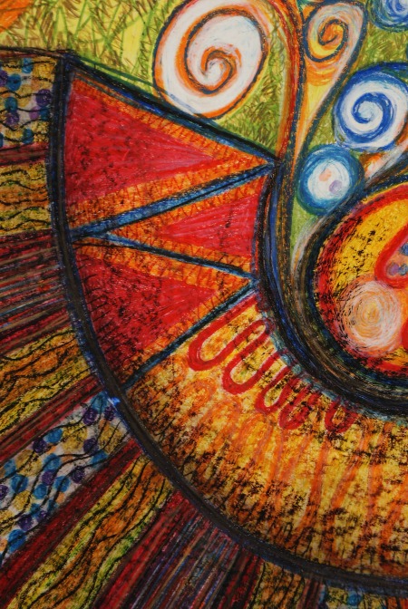 Grundlage sind Wachskreidestifte der Fa. Stockmar, welche mit ihrer außergewöhn- lichen Leuchtkraft die Dynamik und vitale Farbigkeit der Bilder in besonderem Maße unterstützen.